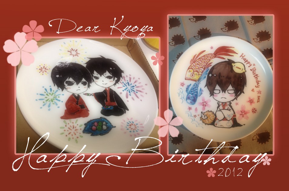 ヒバ誕お皿、親友へのプレゼントにしようかと、姉ちゃんと二人で描いた❀